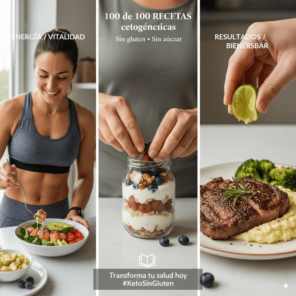 El ebook incluye recetas cetogénicas sin gluten y sin azúcar, ideales para una alimentación saludable.